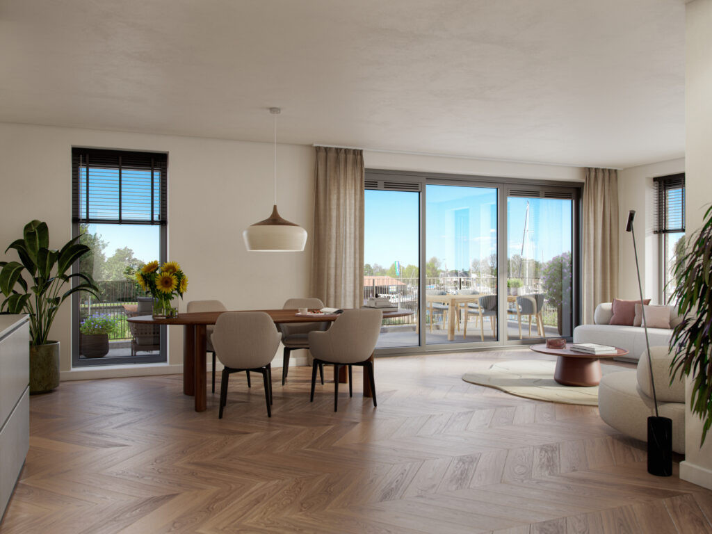 In welke richting je straks vanuit je appartement ook kijkt: altijd bevindt het water van de Oudvaart of de jachthaven zich in je blikveld. Hoge ramen van vloer tot plafond vergroten het uitzicht en zorgen voor veel daglicht. Ook vanaf je balkon geniet je van het buitenleven. Met een oppervlakte variërend van 14 tot 21 vierkante meter bieden ze volop mogelijkheden.